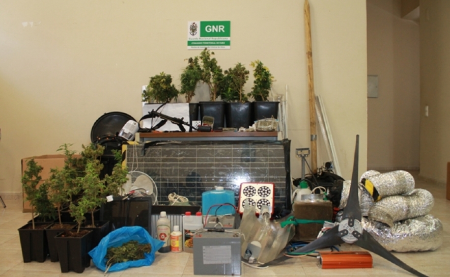 Durante a realização da busca à residência, o Núcleo de Investigação Criminal do Destacamento Territorial da Guarda Nacional Republicana de Silves, em colaboração com o Destacamento de Intervenção da Guarda Nacional Republicana de Faro, apreendeu produto estupefaciente suficiente para 80 doses individuais de haxixe, para além de 26 pés de cannabis ainda em fase de crescimento (em vasos) e 04 pés adultos já em fase de secagem.