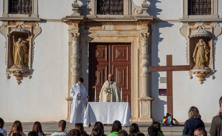 Seguiu-se o momento de adoração eucarística – durante o qual leram também as cartas que tinham escrito no caminho de preparação para o seu Jubileu em Roma com as expectativas que tinham para o presente Ano Santo – e a procissão com o Santíssimo Sacramento pela baixa da cidade até à catedral, presidida também pelo padre Samuel Camacho. Ali chegados, os jovens foram recebidos pelo bispo do Algarve no cimo da escadaria onde foi também colocada a cruz das JDJ que também veio no cortejo. “Viestes com Cristo, percorrendo as ruas desta cidade. Fostes rezando e meditando na vossa vida; como encontrar a verdadeira alegria, paz e esperança quando decidis seguir a Cristo, luz do mundo, como peregrinos nesta terra”, disse-lhes D. Manuel Quintas, convidando-os a renovar as promessas do seu Batismo antes de entrarem na Sé para celebrarem a Eucaristia.