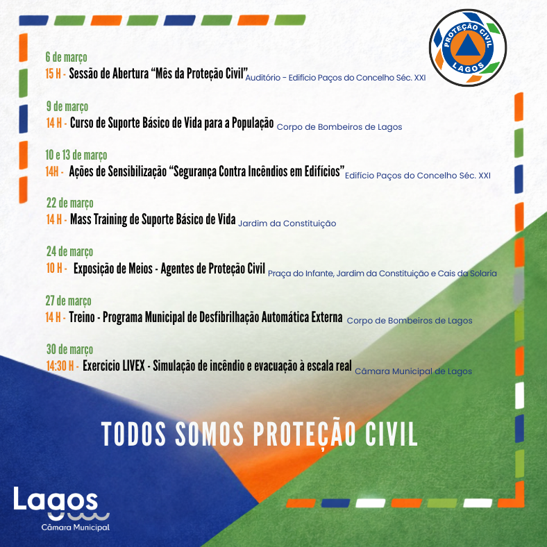 O município de Lagos convida a comunidade a participar nas atividades programadas, reforçando o compromisso coletivo com a segurança, a prevenção e a proteção de pessoas e bens.
