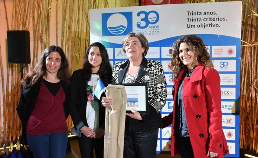 A iniciativa integrou igualmente a cerimónia de entrega dos prémios atribuídos pela ABAE – Associação Bandeira Azul da Europa. Recorde-se, a este propósito, que Lagos foi galardoado com o 3º Prémio do Concurso Nacional de Boas Práticas Ambientais (com a Coleção de Marcadores de Livros – Bandeira Azul 30 Anos” criada pelos serviços da autarquia, no âmbito da Campanha de Sensibilização/ Educação Ambiental “Lagos na Onda do Verão 2016”), tendo ainda sido distinguido como um dos Municípios “Mais Azuis” do país, tendo-se destacado pelo rigor, diversidade e qualidade das Atividades de Educação Ambiental do Programa da BA. O referido concurso pretendia premiar e dar visibilidade às boas práticas ambientais implementadas por Municípios, Concessionários de Praia e Marinas, e outras entidades que de alguma forma estão relacionados com a gestão e manutenção de zonas balneares e náutica, que contribuem para a sustentabilidade, com inovação, na resolução de problemas ambientais.