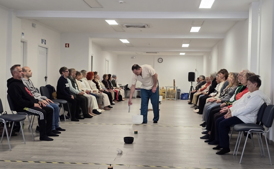 Melhoria da Concentração e da Qualidade do Sono: O estado meditativo aprofundado pelo som favorece a quietude mental, potenciando a focagem e a atenção. Esta serenidade adquirida durante a sessão tende a prolongar-se, contribuindo para noites de sono mais reparadoras e profundas. Estímulo ao Autoconhecimento e à Conexão Interior: A prática funciona como uma ferramenta de introspeção, criando um espaço seguro para os participantes se conectarem consigo mesmos, cultivando a presença no momento atual (mindfulness) e o desenvolvimento pessoal. Integrada num projeto dedicado a promover um envelhecimento ativo e saudável, esta sessão reforça o compromisso da comunidade em oferecer atividades que cuidem não apenas do corpo, mas também da mente e do espírito. A Meditação com Taças de Cristal apresenta-se assim como uma valiosa prática complementar para quem busca um caminho de bem-estar integral e qualidade de vida em todas as idades.