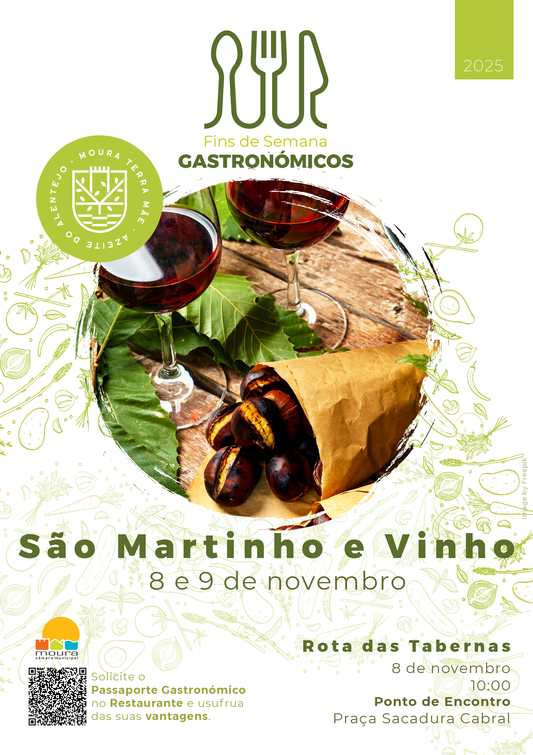 Para além de divulgar os sabores e saberes do concelho, o Fim de Semana Gastronómico “São Martinho e Vinho” contribui para o reforço da marca territorial “Moura, Terra Mãe do Azeite do Alentejo”, afirmando a autenticidade e riqueza dos produtos endógenos da região.