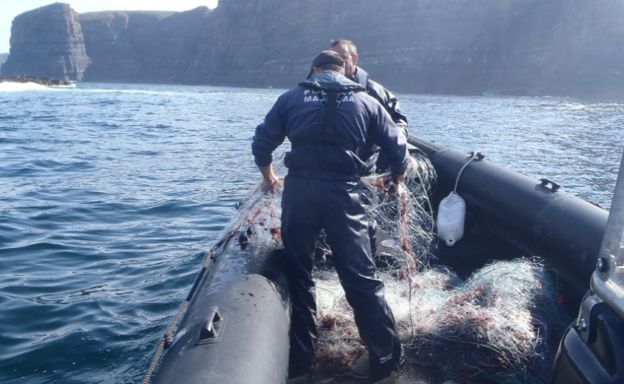 Acordo legislação em vigor, as redes de emalhar não podem ser caladas a uma distância inferior a um quarto de milha da linha de costa. Esta infração é punida com coima que varia entre 598,56€ e 37 409,84€.