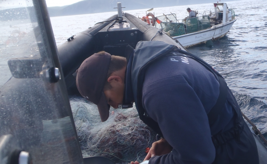 Foi ainda detetada e apreendida uma arte de pesca de tresmalho, com um comprimento aproximado de 200 metros, que se encontravam calada em zona proibida e com falta da respetiva sinalização prevista por lei.
