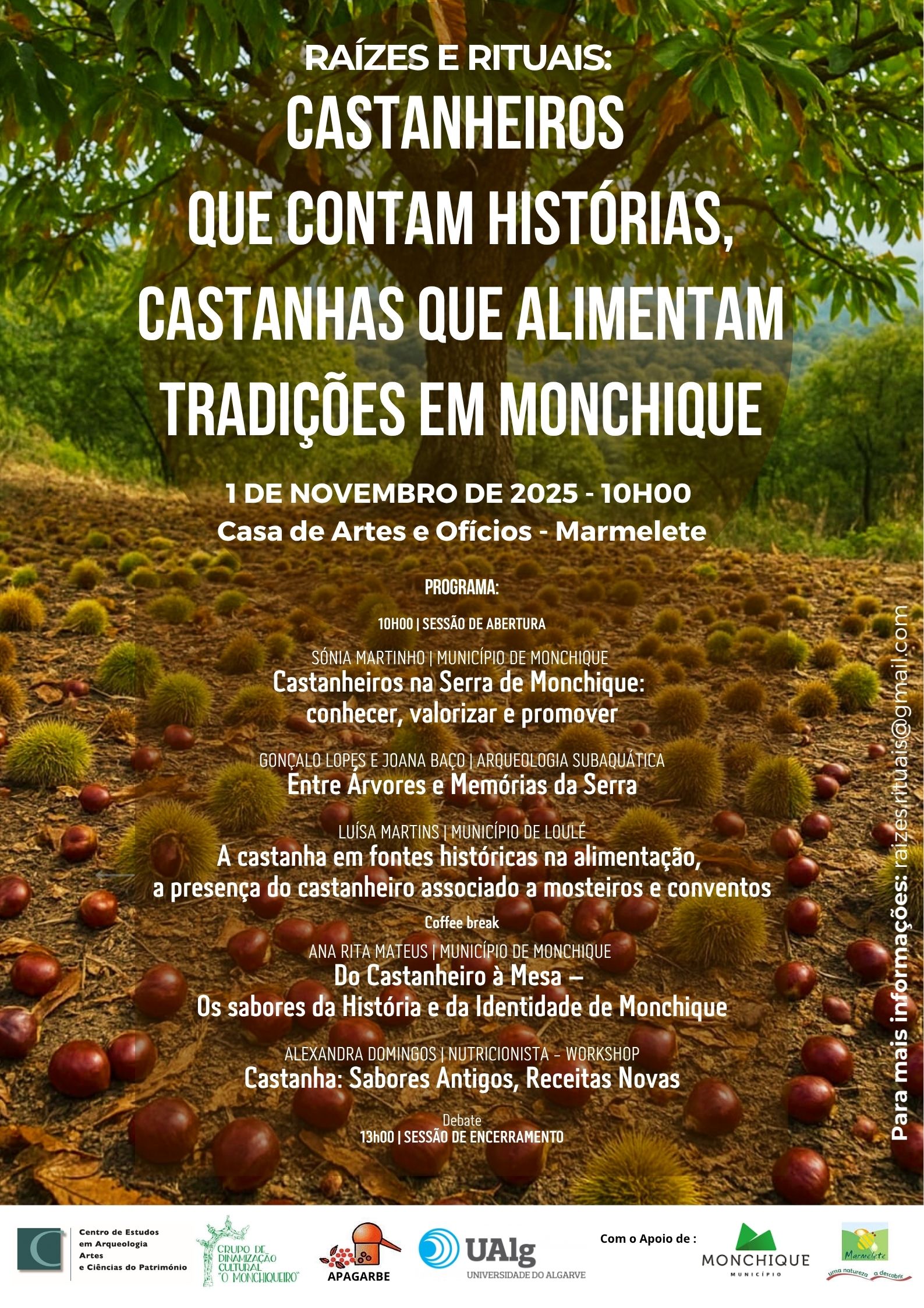 O painel é composto por elementos de diferentes áreas, nomeadamente Sónia Martinho, engenheira florestal do Município de Monchique, Gonçalo Lopes e Joana Baço, que vão tratar da madeira de castanho na perspetiva da arqueologia subaquática e Luísa Martins (Município de Loulé) e Ana Rita Mateus (Município de Monchique) que vão falar da vertente gastronómica. A manhã terá ainda um momento destinado ao workshop “Castanha: Sabores Antigos, Receitas Novas”, da responsabilidade da nutricionista Alexandra Domingos.