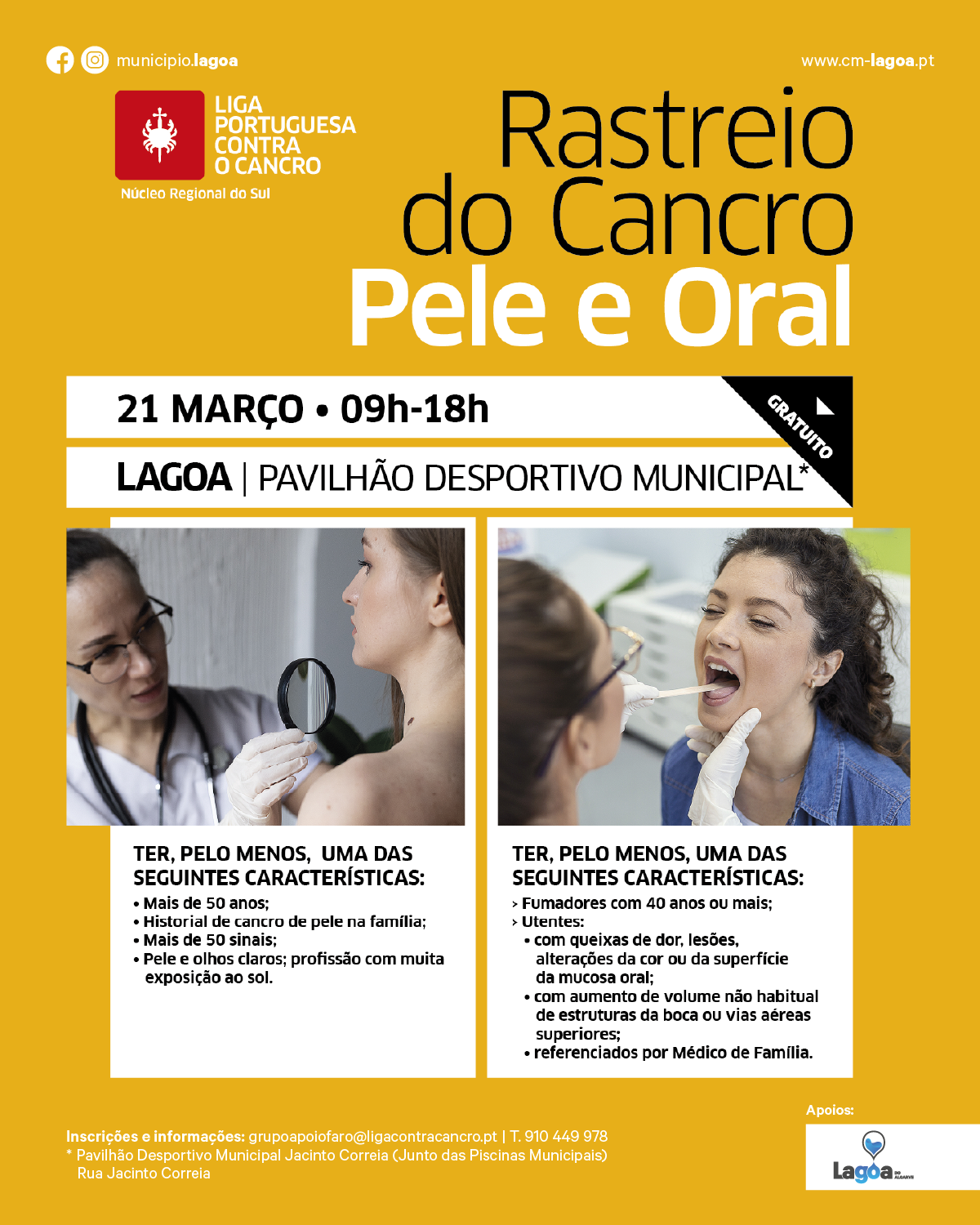 Esta ação gratuita pretende sensibilizar para a importância da prevenção e do diagnóstico atempado, permitindo à população realizar rastreios nas áreas do cancro da pele e do cancro oral, através da observação de sinais suspeitos na pele e na cavidade oral.
