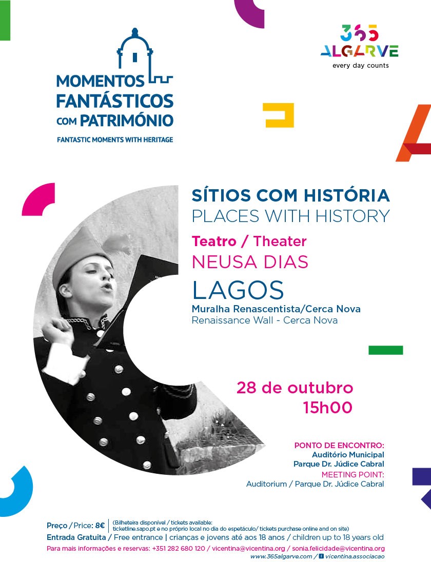 No próximo dia 28 outubro volta a cena na MURALHA DE LAGOS/ CERCA NOVA, o espetáculo “SITIOS COM HISTÓRIA”, integrado na programação da VICENTINA “Momentos Fantásticos com Património”, para o Programa 365 Algarve.