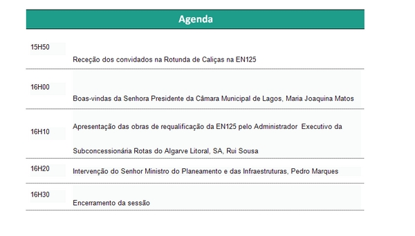 O Conselho de Administração da Infraestruturas de Portugal tem o prazer de o/a convidar a assistir à apresentação dos trabalhos finais de requalificação da EN125 no âmbito da Subconcessão do Algarve Litoral.