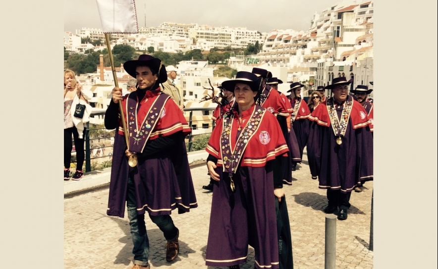 Concluídas as cerimónias, fez-se a primeira foto oficial de família, nas escadarias da Igreja Matriz. Depois, para gáudio dos populares e turistas, a comitiva procedeu ao já habitual Desfile das Confrarias animado pela Fanfarra dos Bombeiros Voluntários de Albufeira pelas ruas da cidade, com passagem pelas escadas rolantes até ao Pau da Bandeira, onde teve lugar mais uma foto de família.