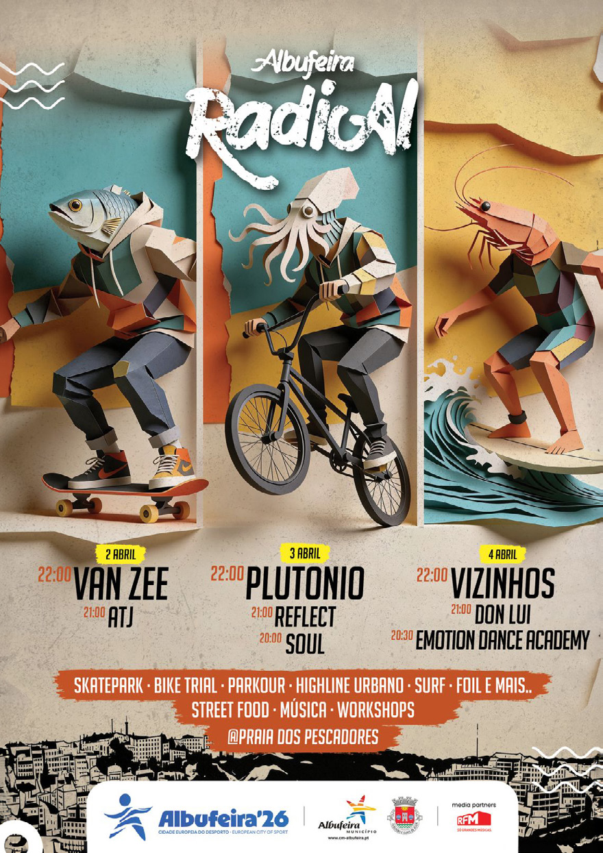 A Praia dos Pescadores recebe, de 2 a 4 de abril, a primeira edição do Albufeira Radical, um festival inteiramente dedicado aos jovens, aos desportos urbanos e à cultura contemporânea.