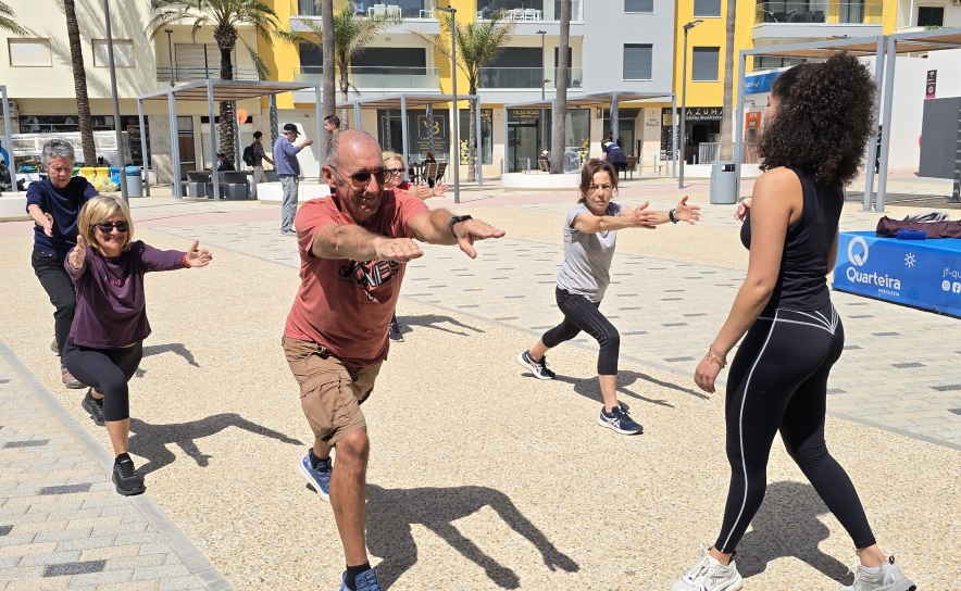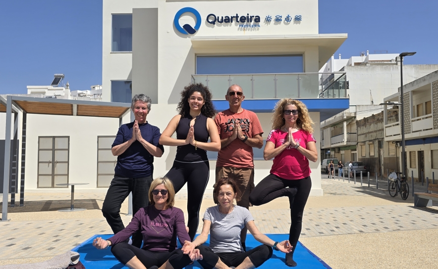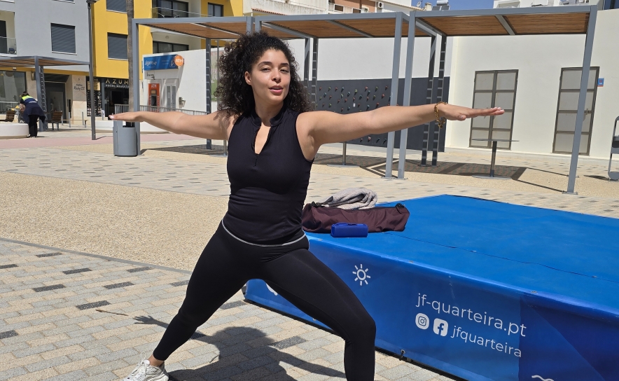 Bem-estar integral: o corpo descansa, a mente aquieta A aula de Yoga com Ema Jamarino foi o complemento perfeito para o Treino Funcional que a precedeu. Juntas, as duas sessões ilustraram na perfeição o conceito de bem-estar integral: o corpo fortalecido e tonificado pela manhã; a mente acalmada e centrada momentos depois. Uma oferta completa que a Câmara Municipal de Loulé e a Junta de Freguesia de Quarteira proporcionaram à comunidade de forma gratuita, ao ar livre, num cenário de eleição.