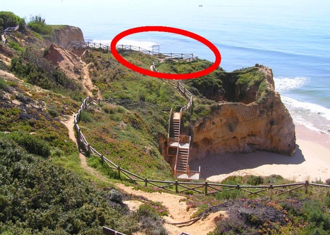 O referido miradouro e outras partes dessa obra, paga com o dinheiro dos contribuintes, ruíram agora, juntamente com a arriba que a suportava.
