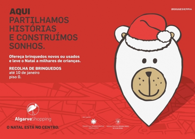 O AlgarveShopping vai levar a cabo, até 10 de janeiro de 2016, a realização de uma Campanha de recolha de brinquedos, com o apoio da União das Misericórdias Portuguesas. A Campanha tem como objetivo dar uma nova vida aos brinquedos usados e criar, assim, sorrisos nas crianças apoiadas pela Santa Casa da Misericórdia de Albufeira que os irão receber neste Natal.