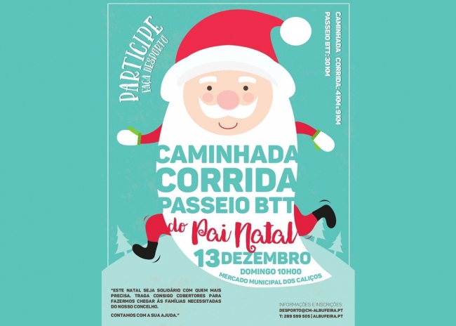 As celebrações do Natal em Albufeira voltam a integrar a Caminhada e Corrida do Pai Natal, que junta cerca de 800 participantes vestidos a rigor para colorirem as ruas da cidade.