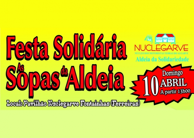 A Nuclegarve, IPSS do Concelho em Albufeira, irá realizar no próximo dia 10 de abril a «Festa Solidária As Sopas da Aldeia», a partir das 13h00, no pavilhão da Nuclegarve, em Fontainhas.
