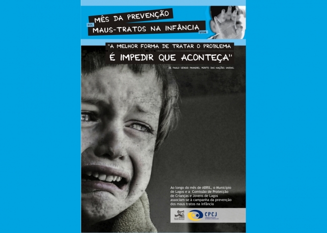 O Município de Lagos e a Comissão de Proteção de Crianças e Jovens de Lagos associam-se ao mês da Prevenção dos Maus Tratos na Infância e Juventude com o intuito de dar mais visibilidade, a nível local, desta importante mensagem e fazendo uma campanha de alerta para a prevenção dos maus-tratos a que muitas crianças e jovens ainda são sujeitos hoje em dia.