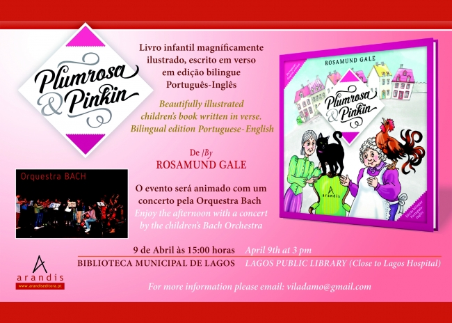 Editado pela Arandis Editora, a apresentação de «Plumrosa & Pinkin» contará com a participação da Orquestra Bach, a orquestra infantil que conta com alunos da Academia de Música de Lagos e Conservatórios de Música de Portimão e de Lagoa.