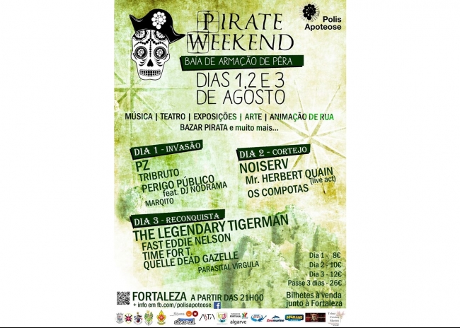 O PIRATE WEEKEND, em Armação de Pêra, conta com o apoio do Município de Silves. Esta iniciativa, dinamizada pela Associação Polis apoteose, terá lugar nos dias 1, 2 e 3 de agosto, reunindo alguns nomes sonantes do panorama musical nacional nesta vila do concelho.
