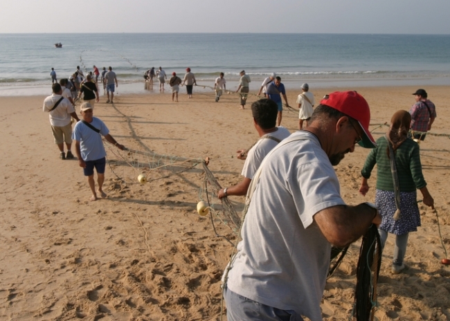 Tradicionalmente a recolha era feita a trabalho braçal registando-se também o recurso de juntas de bois, e mais tarde foram introduzidos os tratores – nomeadamente na costa Oeste. Na Meia Praia mantém-se, há mais de 100 anos, a tradição de puxar a rede à força de braços.