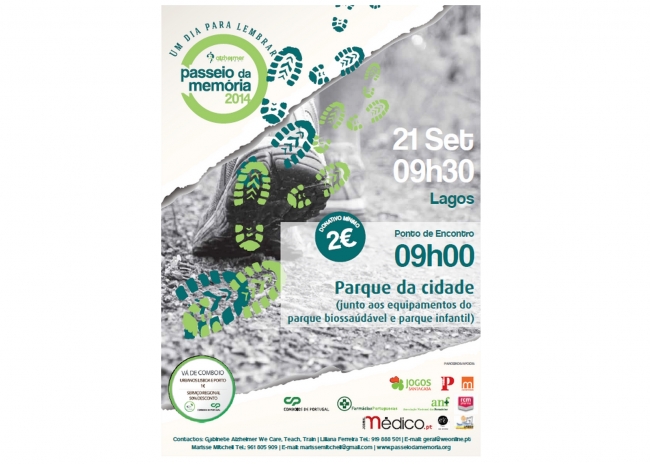 Decorre no próximo dia 21 de setembro, em Lagos, o Passeio da Memória, para angariação de fundos para a Alzheimer Portugal (associação portuguesa de apoio aos familiares, cuidadores e doentes de Alzheimer e pessoas com demência).