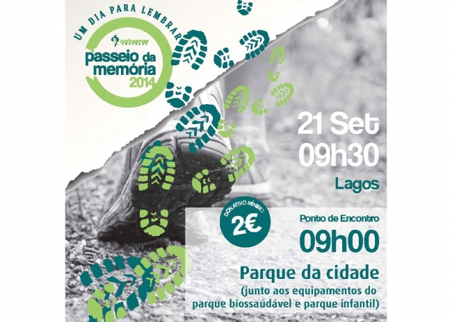Irá decorrer em Lagos, no próximo dia 21 de setembro, o Passeio da Memória, iniciativa para angariação de fundos para a Alzheimer Portugal (Associação Portuguesa de Apoio aos Familiares, Cuidadores e Doentes de Alzheimer e pessoas com demência).