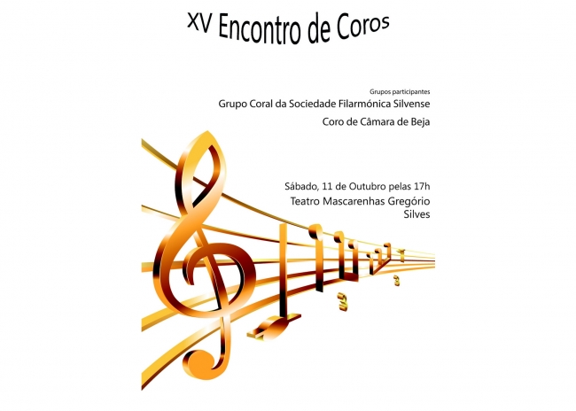 O “Encontro de Coros” organizado pela Sociedade Filarmónica Silvense terá lugar no próximo dia 11 de outubro, pelas 17h00, no Teatro Mascarenhas Gregório, em Silves. O evento conta com o apoio do Município de Silves.