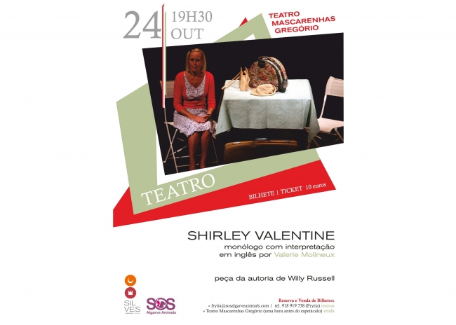 Numa coprodução entre a SOS Algarve Animals e a Câmara Municipal de Silves, sobe ao palco do Teatro Mascarenhas Gregório no próximo dia 24 de outubro, pelas 19h30, a peça ”Shirley Valentine”, de Will Russel, um monólogo com a interpretação em inglês de Valerie Molineux.