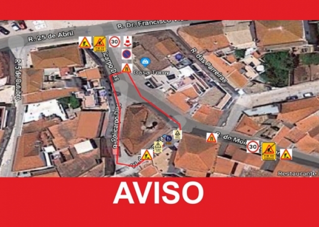 Assim, como o início desta obra, o trânsito será interrompido na zona envolvente à intervenção na Rua Policarpo Dias e na Rua da Mesquita (exceto cargas e descargas neste último arruamento). Adicionalmente, a faixa de rodagem da Rua Moinho da Porta ficará sujeita a estreitamento e a proibição de estacionamento na zona da obra.