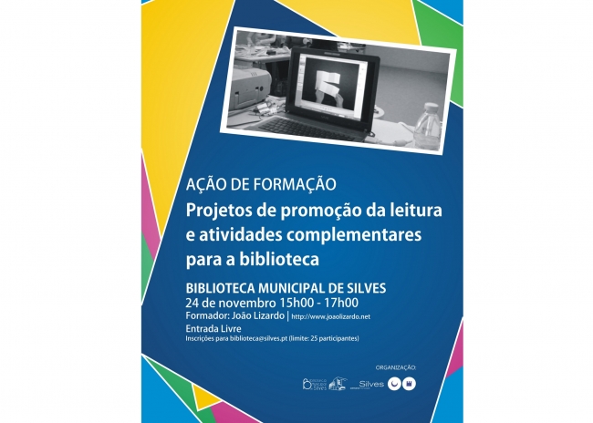 Uma Ação de Formação sobre projetos de promoção da leitura e atividades complementares para a biblioteca, organizada pela Biblioteca Municipal de Silves, terá lugar no próximo dia 24 de novembro, entre as 15h00 e as 17h00, na Sala Urbano Tavares Rodrigues. O formador responsável pela dinamização do evento é João Lizardo.