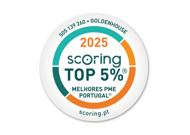 De acordo com os critérios do método ScorePME, relativos ao exercício fiscal de 2024, a Goldenhouse obteve um Índice de Desempenho e Solidez Financeira superior a 80%, resultado que está apenas ao alcance de menos de 5% das empresas nacionais. A empresa alcançou a Notação SCORING "EXCELENTE" (NS 5), reconhecimento que atesta a consistência da sua gestão nas vertentes económica e financeira.