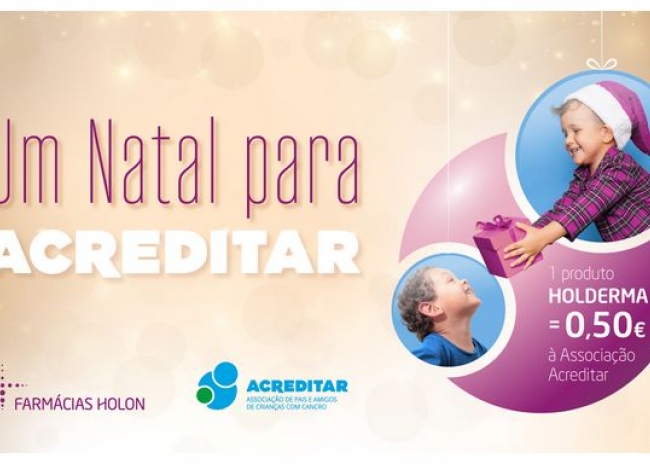 Através desta iniciativa solidária, quem visitar uma farmácia Holon, entre 15 de novembro e 31 de dezembro, vai poder apoiar as famílias de crianças e jovens que vivem com uma doença oncológica e que são apoiadas por esta instituição. Assim, ao comprar um produto da gama Holderma – que inclui Creme Hidratante Ultra-Rico, Champô Extra Suave, Óleo de Banho, Bálsamo Labial Natural, Creme de Mãos e muito mais –, numa farmácia Holon está a apoiar a associação Acreditar.
