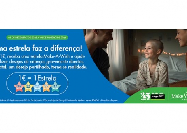 “O apoio do Pingo Doce e dos seus clientes é essencial para conseguirmos levar sorrisos, esperança e força a estas crianças e jovens. Quando uma comunidade se une, podemos fazer a diferença e transformar vidas. Cada estrela e cada donativo representa muito mais do que um gesto solidário — representa a oportunidade real de mudar o dia, e por vezes o futuro, de uma criança gravemente doente.” – Margarida Galvão, Diretora Executiva da Make-A-Wish Portugal.