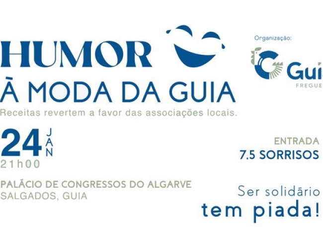 A Junta de Freguesia da Guia volta a promover a iniciativa solidária «Humor à Moda da Guia», um evento que alia boa disposição e solidariedade, e que terá lugar no próximo dia 24 de janeiro, às 21h00, no Palácio de Congressos do Algarve, nos Salgados.
