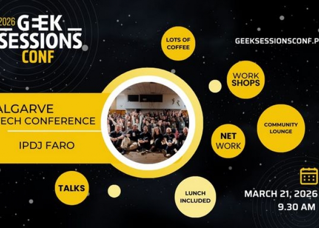No dia 21 de março de 2026, o IPDJ Faro volta a ser palco da GeekSessions Conf, a conferência anual organizada pela Geek Sessions, uma comunidade sem fins lucrativos dedicada a fazer crescer o ecossistema tecnológico no Algarve.