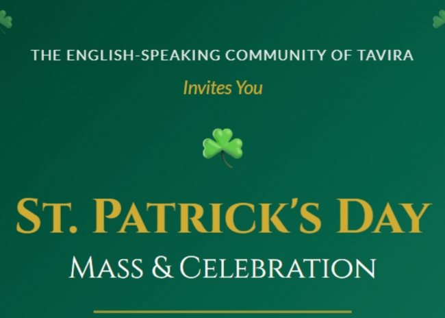 A Comunidade de Língua Inglesa de Tavira convida residentes e visitantes do Algarve a juntarem-se à celebração do Dia de São Patrício (St Patrick s Day), que terá lugar no próximo dia 17 de março, às 17h00, com uma missa especial na histórica Igreja de Santiago, em Tavira.