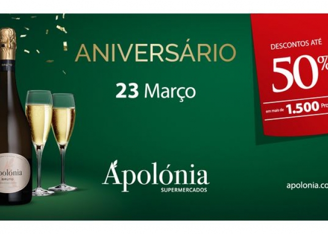 Os Supermercados Apolónia celebram, no próximo dia 23 de março, o seu 43.º aniversário. A data será assinalada com várias iniciativas nas lojas de Almancil, Galé e Lagoa, que incluem descontos, degustações e momentos de convívio com os clientes.