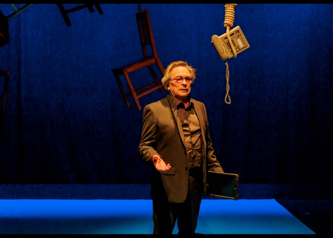 Em palco estão os atores Luís Vicente e Tânia Silva, que interpretam as duas personagens em conflito, e o telefone, que nesta encenação é considerado uma terceira “personagem”.