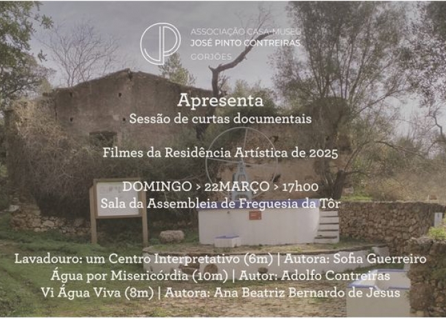 No Dia Mundial da Água, a Associação Casa-Museu José Pinto Contreiras (ACMJPC) convida para uma sessão de filmes documentais e experimentais, produzidos na Residência Fílmica de 2025, no âmbito do ‘Programa TeMPo de Património’. Com base na proposta de produzir curtas documentais, sobre a criação de um Centro de Interpretação da Rota dos Poços dos Gorjões, a instalar no antigo lavadouro público da Fonte Santa, a ACMJPC convidou alguns artistas a produzir pequenos filmes de forma autónoma, em suportes diversos. Assim, temos agora a oportunidade de continuar a fazer a sua apresentação pública, depois de Gorjões, São Brás de Alportel e Loulé, nesta sessão destinada à comunidade da Freguesia de Tôr, no concelho de Loulé. A sessão contará com alguns dos realizadores presentes, para dinamizar uma pequena conversa com o público, no final da sessão.
