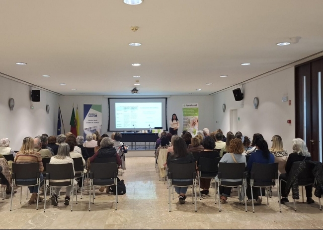 A sessão incluiu ainda a intervenção de Irina Vairinhos, gestora de produto na FarmAssist, que apresentou uma abordagem mais técnica e esclarecedora sobre aspetos legais e burocráticos, nomeadamente o estatuto do cuidador informal, o estatuto do maior acompanhado e o testamento vital.