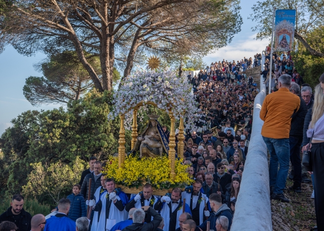 Às 16h é ali celebrada a Eucaristia solene com consagração a Nossa Senhora. Tem início depois a grande procissão que percorrerá as principais ruas da cidade e subida da imagem de Nossa Senhora da Piedade ao santuário. É o adeus da padroeira à sua terra e o regresso em apoteose, com a subida do andor ao íngreme cerro onde se implanta o santuário com a pequena ermida que, a poente, se ergue sobranceira a toda a cidade.
