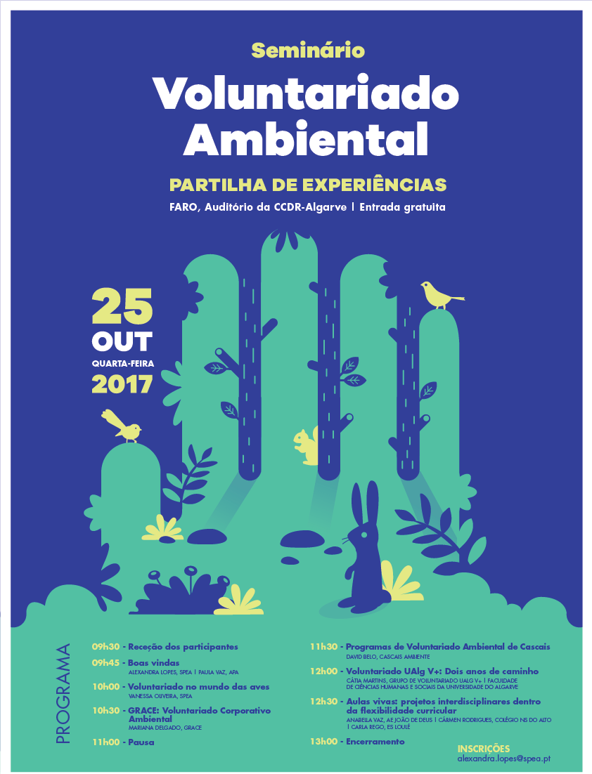 Para além do 8.º ERVAA, no programa do dia 25 de outubro (quarta-feira), destacamos o seminário VOLUNTARIADO AMBIENTAL - Partilha de experiências, a realizar pelas 9h30 no mesmo local, onde participam representantes da Universidade do Algarve, da Agência Portuguesa do Ambiente (APA), da Direção Geral de Educação, do Agrupamento de Escolas João de Deus e do Centro de Ciência Viva do Algarve.