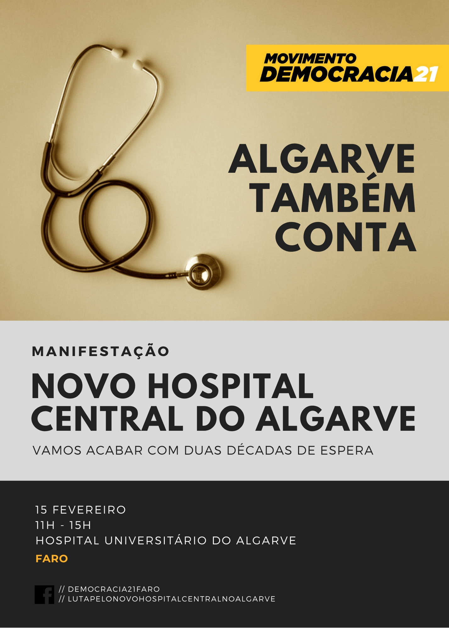Após duas décadas de um processo conturbado sem qualquer previsão de construção do novo hospital, o Democracia21 - Algarve decidiu convocar uma manifestação no próximo dia 15 de Fevereiro, a partir das 11h, no Centro Hospitalar Universitário de Faro.