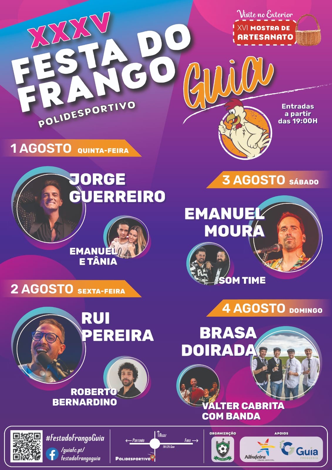 Está a chegar a Festa do Frango da Guia. O evento que promove uma das mais reconhecidas iguarias da região, anima o Polidesportivo da Guia, nos dias 1, 2, 3 e 4 de agosto.