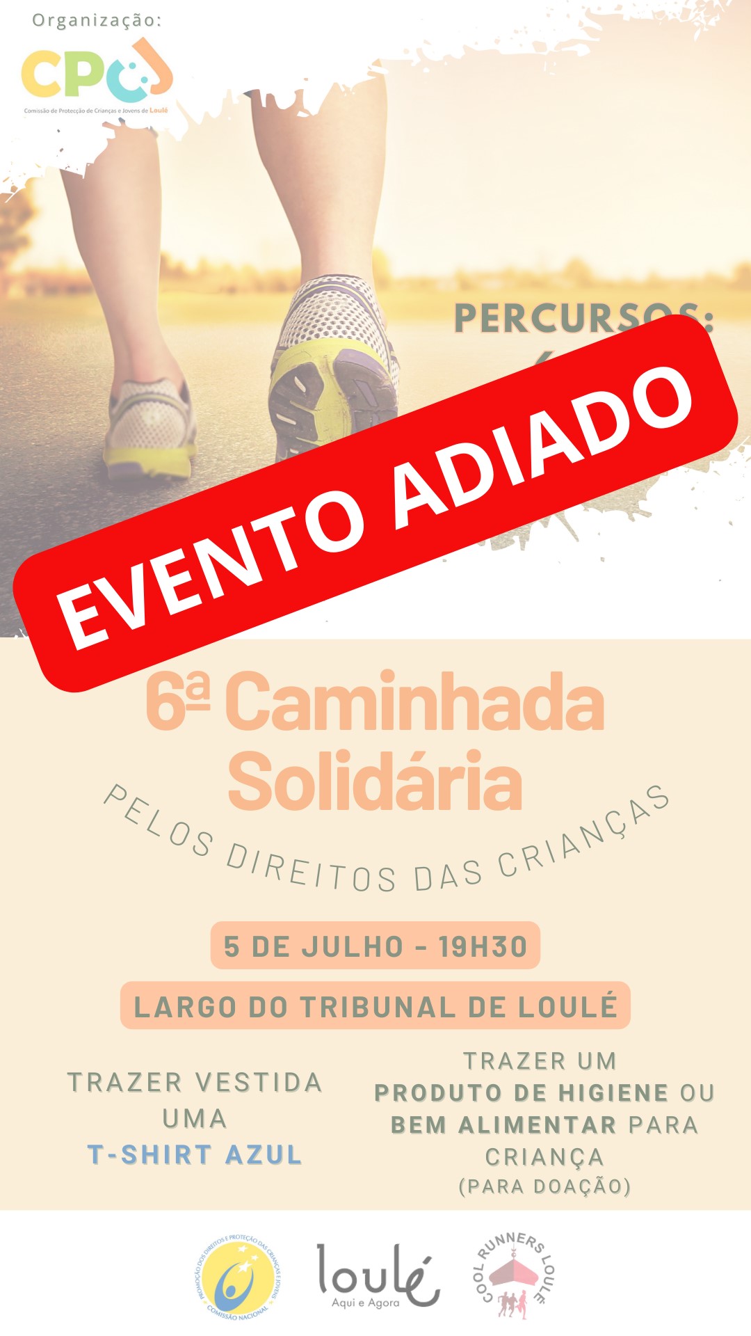 Prevendo-se uma adesão abaixo do expectável à Caminhada Solidária agendada para o dia 5 julho, pelo facto de decorrer, à mesma hora, um jogo de futebol importante para Portugal (UEFA Euro 2024), comunicamos que a 6.ª Caminhada Solidária foi adiada para o dia 12 de julho, mantendo-se a hora, o local e as condições de participação.