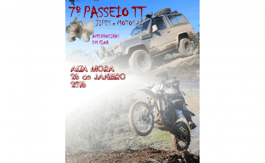 O 7º Passeio TT Jipes e Motos – “Amendoeiras em Flor” inicia-se às nove da manhã, prolongando-se pela tarde fora, na qual os pilotos de jipes e motos vão disfrutar dos encantos da serra, do cheiro da esteva, das amendoeiras em flor, num cenário preenchido pelos rebanhos da cabra de raça algarvia, pelas ribeiras, pela simpatia das gentes da terra e pelos bons sabores da gastronomia local.