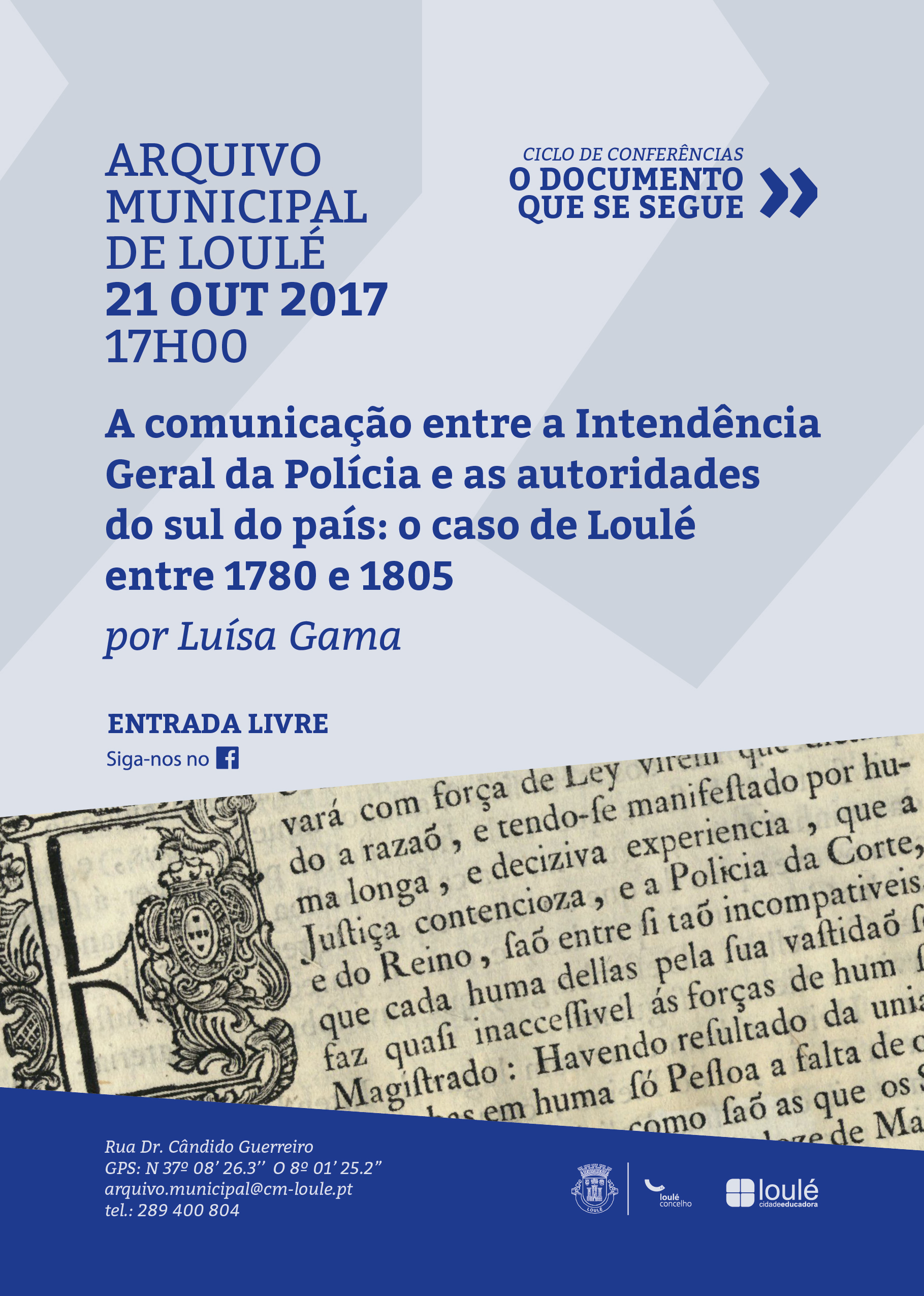 A Intendência Geral da Polícia, criada em junho de 1760, foi o primeiro órgão surgido em Portugal com objetivos específicos de controlo e regulação do espaço público, no contexto das reformas políticas e institucionais que se seguiram ao Terramoto de 1755. Através do registo da correspondência entre a Intendência e as autoridades locais, pretendemos percecionar o papel de Loulé no quadro das comunicações com o sul do Reino, nomeadamente no controlo da criminalidade e na instigação de novas práticas sociais e económicas nos finais do Antigo Regime.