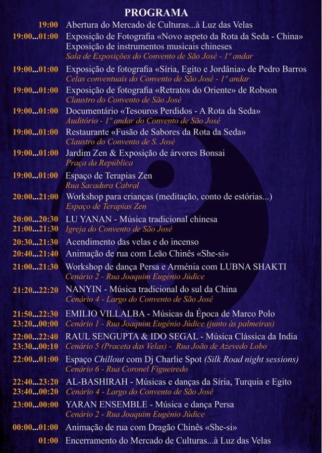 Este evento cultural, de características únicas em Portugal, na sua quarta edição, terá como temática a mítica Rota da Seda, que ligava o ocidente e o oriente.