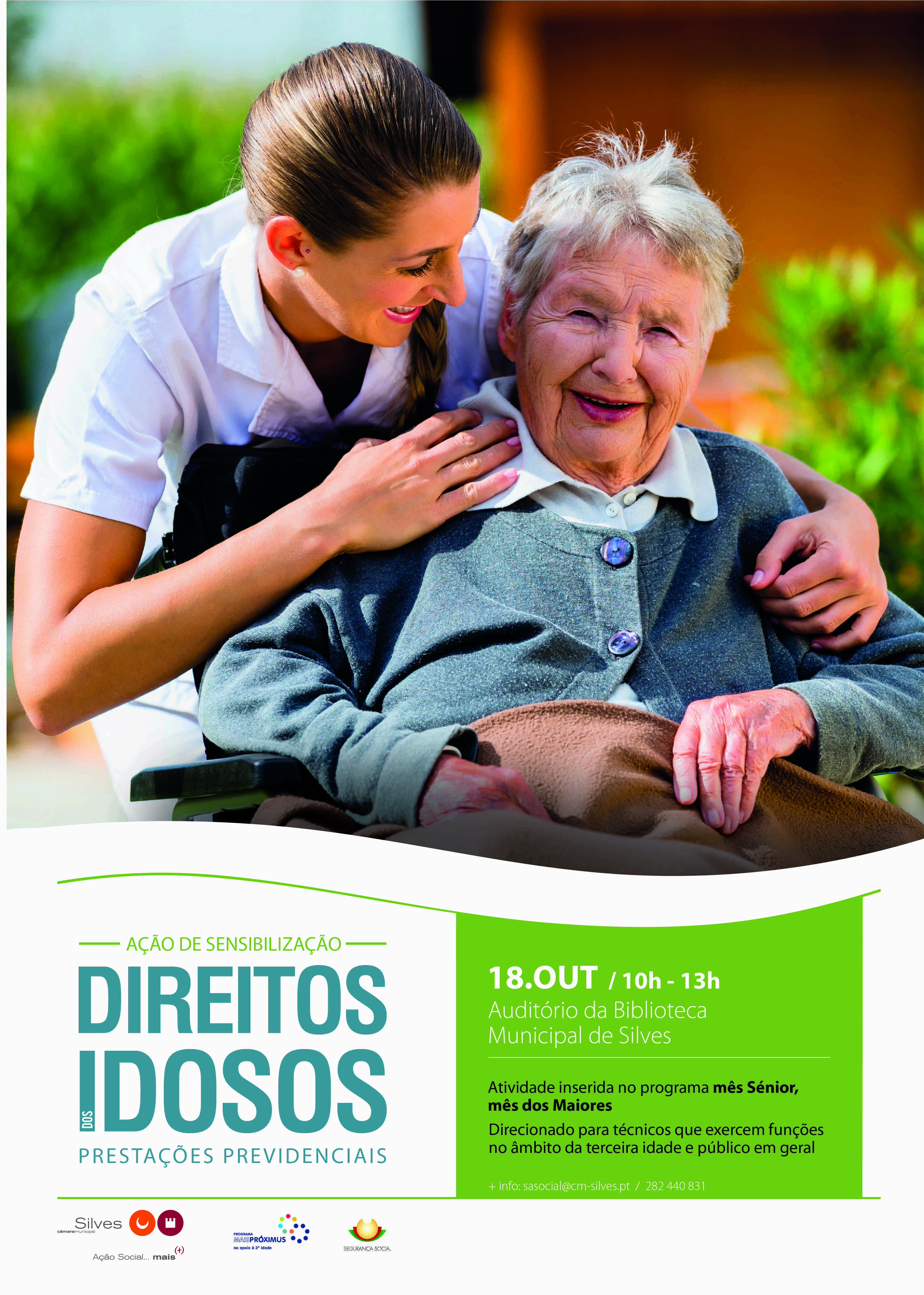 Direcionada para técnicos que exerçam funções no âmbito da terceira idade e público em geral, esta ação dá continuidade a um trabalho de intervenção e proximidade que tem vindo a ser dinamizado pela autarquia silvense junto dos idosos, através da realização de atividades inseridas no programa + Proximus, dos atendimentos efetuados nas Juntas de Freguesia e, mais recentemente, com o processo de criação do Grupo de Trabalho a Apoio ao Idoso (que reúne várias entidades do Concelho que trabalham e que apoiam direta ou indiretamente os seniores), trabalho este que permite uma maior perceção das dificuldades sentidas pelos munícipes relativamente às respostas sociais existentes na área do envelhecimento.
