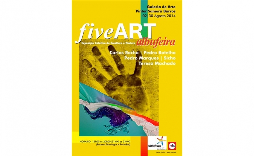 Na Galeria de Arte Pintor Samora Barros vai estar patente ao público, entre 2 e 30 de agosto, a Exposição Coletiva de Escultura e Pintura “fiveART albufeira” de Carlos Rocha, Pedro Botelho, Pedro Marques, Sícho e Teresa Machado. A exposição transporta para o verão algarvio o diálogo entre a pintura e a escultura de cinco artistas portugueses.
