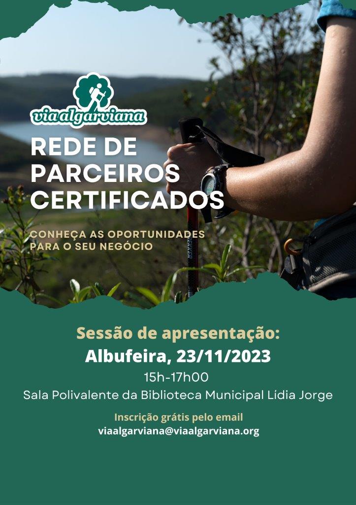 Se tem um negócio ligado ao turismo no Município de Albufeira, venha até à Biblioteca Municipal conhecer as oportunidades que a Rede de Parceiros Certificados da Via Algarviana tem para lhe oferecer.
